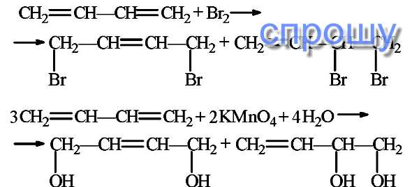 Бутадиен благодаря наличию в молекуле кратных связей обесцвечивает бромную воду и раствор перманганата калия.