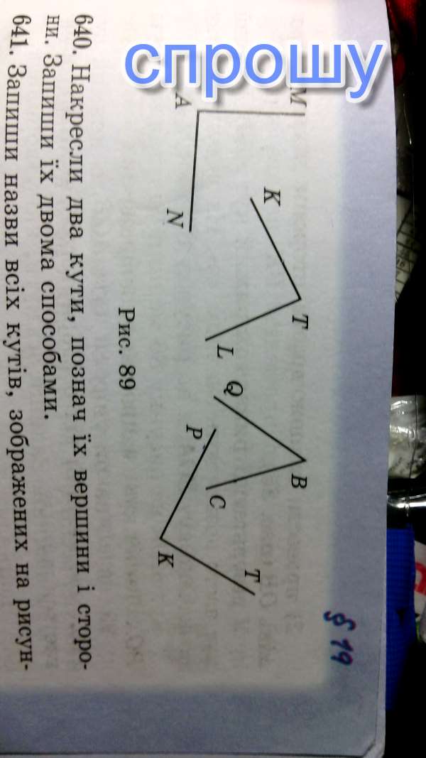 Назви всі кути, зображені на рисунку 89. Назви сторони і вершини кутів. Запиши кут двома способами