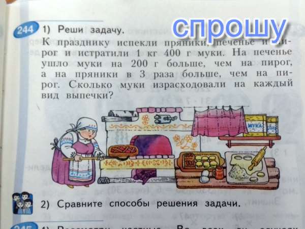 тогда на печенье х+200 муки,а на пряники 3х муки.