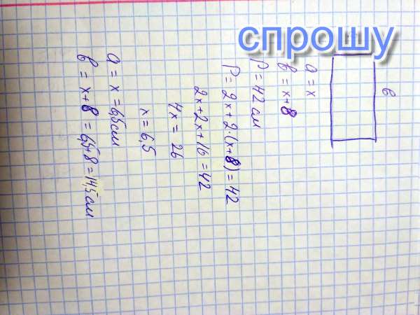 Одна сторона поямоугольника на 8 см больше другой. Найдите стороны прямоугольника если периметр равен 42