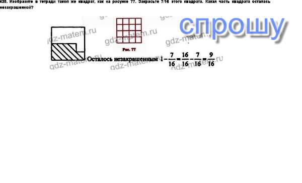 Изобразите в тетради такой же квадрат,как на рисунке 77.Закрасьте 7\16 этого квадрата.Какая часть квадрата осталась незакрашенной?