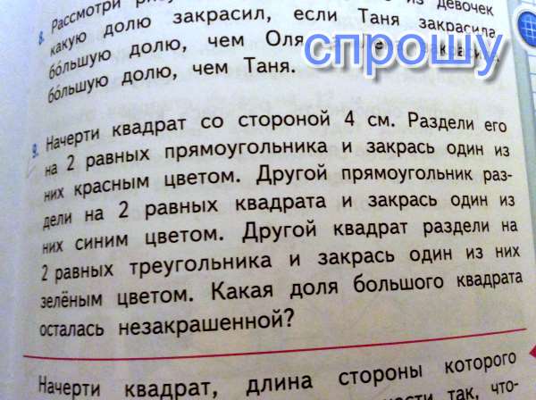 если мы разделим квадрат на 8 частей то в квадрате получится 8 треугольников и будет одна восьмая часть большого квадрата Не закрашена.