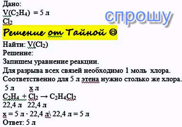 Какой объем Cl2 нужно присоединить к 5 л C2H4 для полного разрыва всех связей?