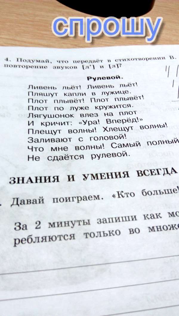 Подумай , что передаёт в стихотворение В. Суслова «Рулевой» повторение звуков [л'] и [л]?