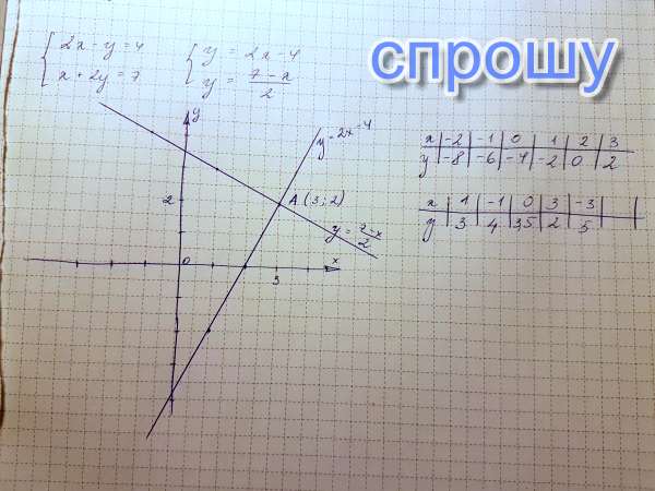 Пожалуйста СРОЧНО!!!!! решите графическим способом систему уhавнений { 2х-у = 4{ х+2у = 7