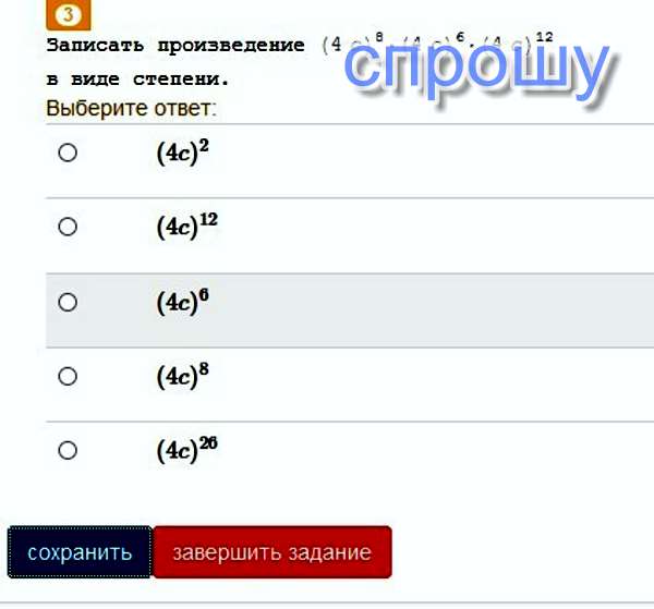 Надо сложить степени числа 4c. Ответ: (4c)²⁶