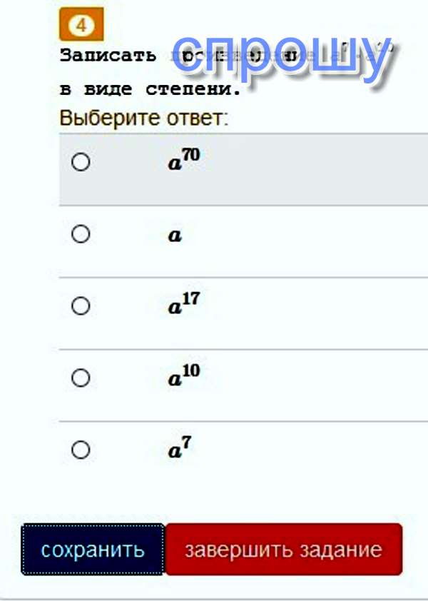 При умножении чисел с одинаковым основанием, основание остаётся неизменным а степени складываются. То есть а7+10= а17