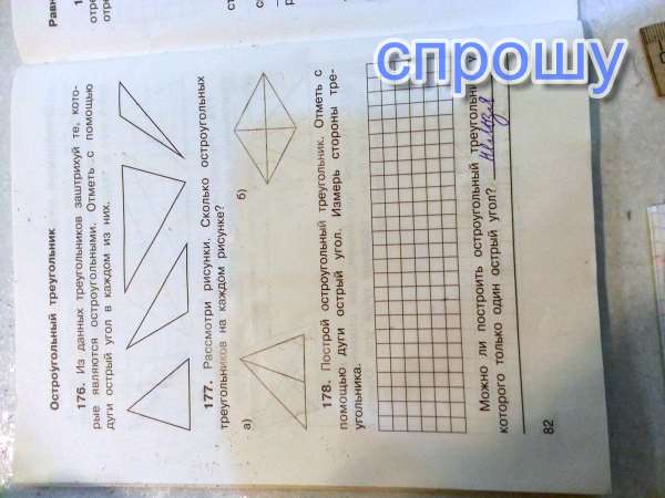 Рассмотри рисунки. Сколько остроугольных треугольников на каждом ресунке?