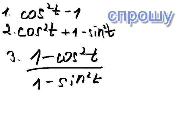 1) cos²t-1=cos²t-(cos²t+sin²t)=cos²t-cos²t-sin²t=-sin²t