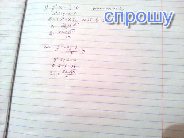 Определите значение y, при которых верно равенство y^2- 9y-2/7 = 0