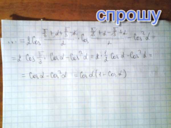 Cos(П/3+альфа)+cos(П/3-альфа)-Сos^2Альфа