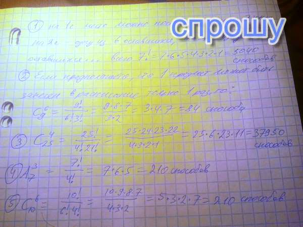 2. Сколькими способами из 9 учебных предметов можно составить расписание учебного дня из 6 различных уроков?