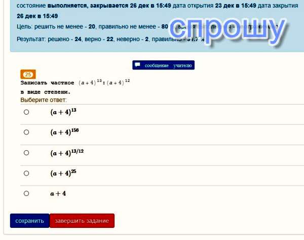 (a+4) ¹³ / (a+4)¹² = (a+4)¹³⁻¹²=(a+4)¹=a+4