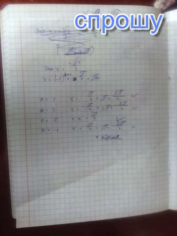 Сколько корней имеет уравнение: sin x = -√2/2 на [-π;2π].