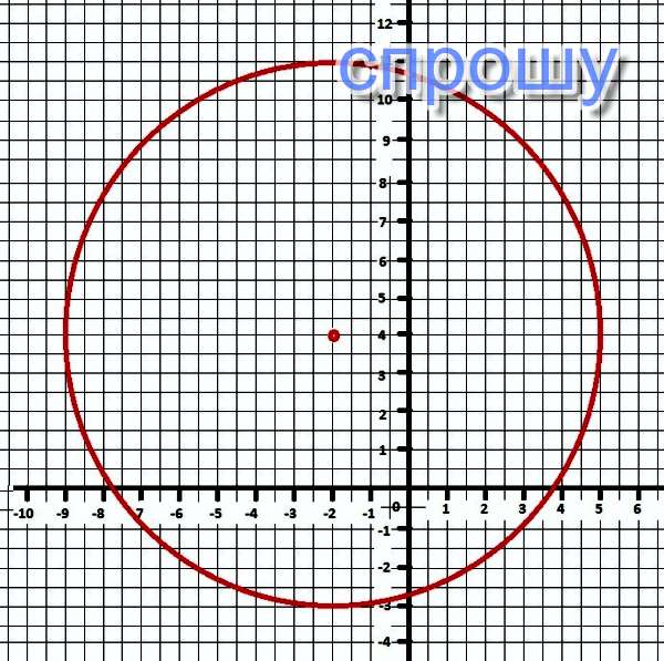 (х+2)² + (у-4)² = 7² - окружность радиусом R=7 и с центром О(-2;4).