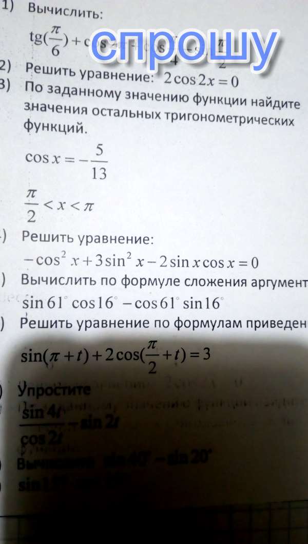 Вычислить по формуле слодения аргумента sin61 ° cos16 ° - cos61° sin16°