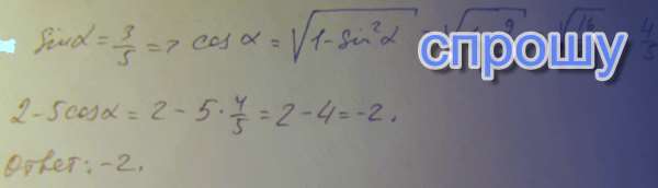 Найдите значение выражения: 2-5cos(a), если известно, что sin(a) = 3/5, если 0