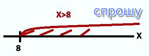 Х БОЛЬШЕ или МЕНЬШЕ тех 8, которые вы получили при решении РАВЕНСТВА.