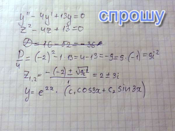 Решить уравнение y''-4y'+13y = 0 Срочно Помогите