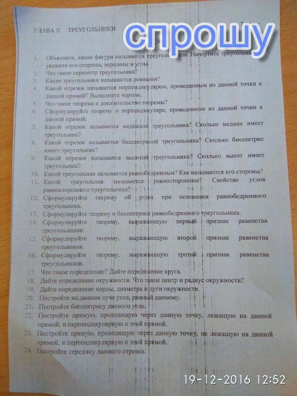 16) Если три стороны одного треугольника равны трем сторонам другого треугольника то они равны.