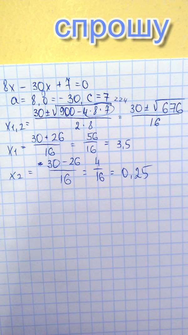 Так как , по теореме Виета х1+х2=-b и х1•х2=c