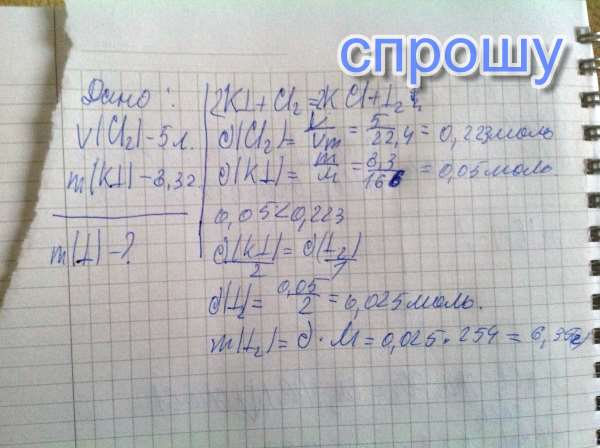 Помогите пожалуйста решить задачу. Сколько граммов йода образуется при пропускании 5 л. хлора (н.у) через раствор,содержащий 8,3г. йодида калия?