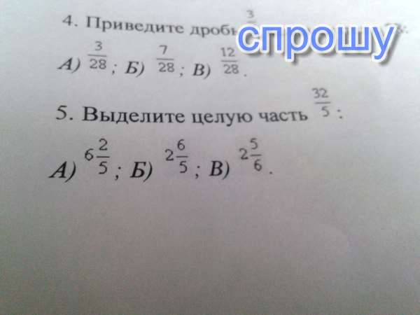 5)А т.к 32 на 5 не делится, берем ближайшее число это 30 , 30 разделить на 5= 6. Целое число 6, потом остаток 2, а знаменатель остается прежнем . остаток 2 т.к 32-30=2. Если что-то не понятно обращайся в личку