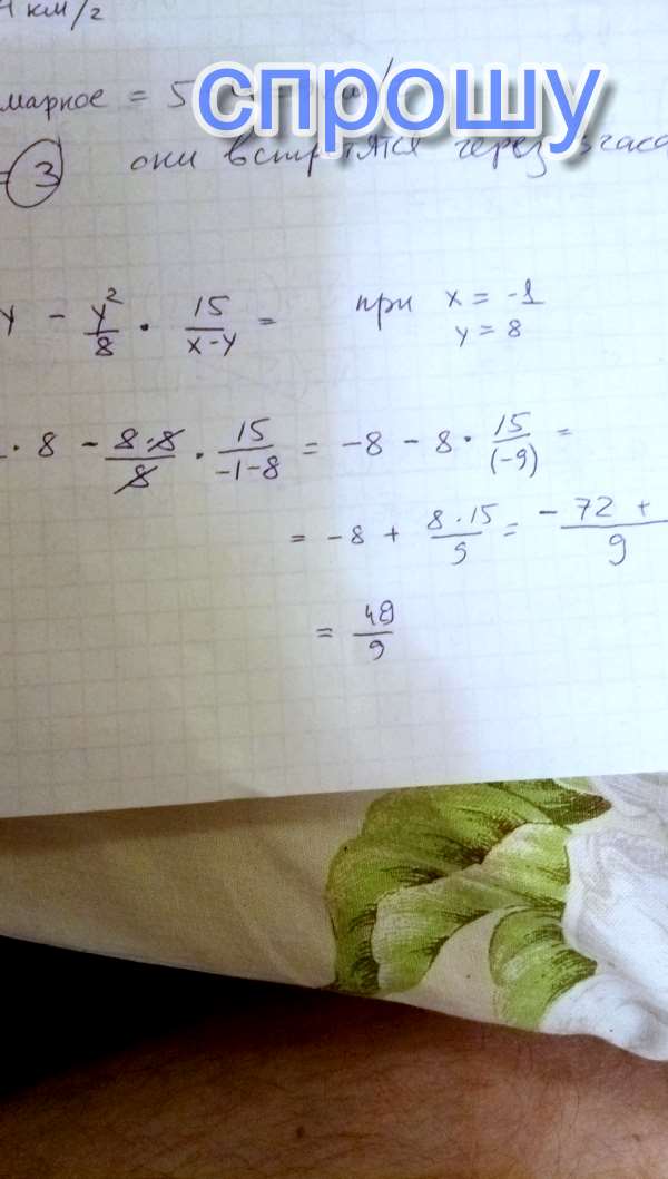 Найдите значение выражения xy-y^2/8*15/x-y при x = -1 y = 8