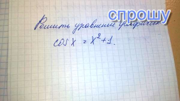 Постройте косинусоиду cosx. и параболу х^2+1, и видно по графикам одна точка пересечения при х=0