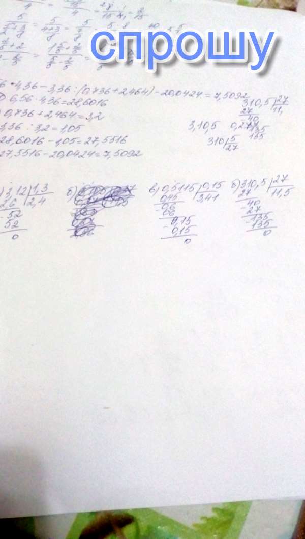 Выполните действие а) 3,12:1,3 б)3,105:0,27 в)63:1,8 г)0,5115:0,15 всё столбиком
