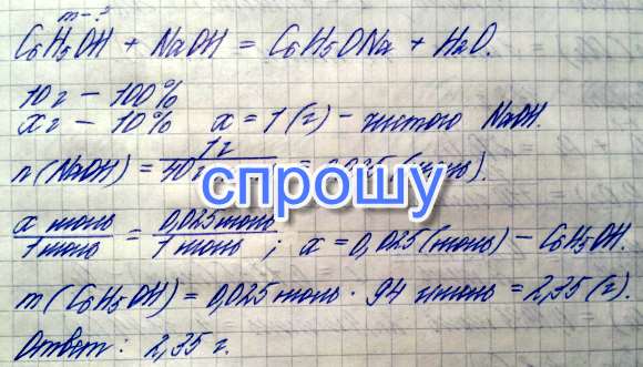 Сколько гр фенола в реакции с 10 г; 10% раствора гидроксида натрия