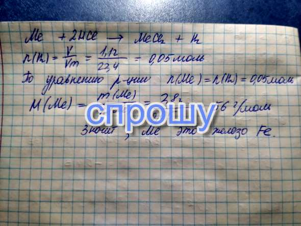 При растворении 2,8 г металла со степенью окисления +2 в избытке соляной кислоты выделилось 1,12 л (н.у.) водорода. Определите метал, вступивший в реакцию