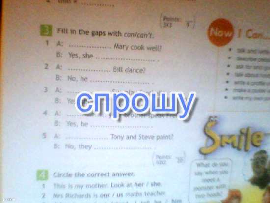 Нужно вставить подходящий глагол can-уметь , cant-не уметь