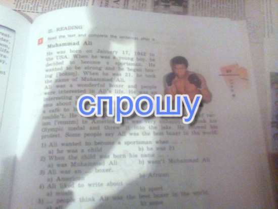 Мухаммад был восхитительным боксером, и люди интересовались жизнью Али.Он был интересным мужчиной тоже.Он часто писал поэмы о боксировании.Однажды он пришёл в кафе выпить чашку кофе,но он не смог.Он был чёрным.Много времени назад в Америке было много расизма.Все были очень огорчёны.Он взял свою олимпийскую медаль и бросил её в озеро.Он показывал свой протест.Некоторые люди говорят, Али был лучшим боксером в мире.