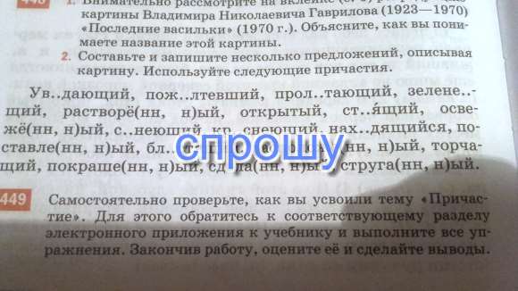 На картине, находящейся на стене и расположенной перед глазами зрителей изображена природа во всём разнообразии красок: на пожелтевшем, блестящем фоне изображена зеленеющая трава,торчащая из почвы. Пролетающий птенец изображен растворенной акварелью.