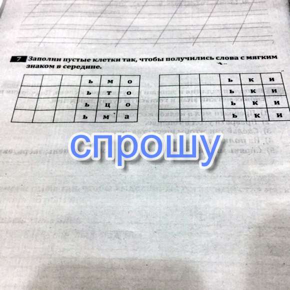 Заполни пустые клетки так чтобы получились слова с мягким знаком в середине