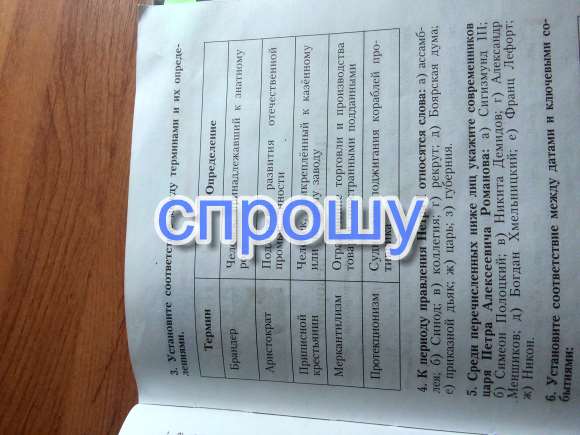 Брандер-5,аристократ-1,приписной крестьянин-3,меркантилизм-4,протекционизм-2