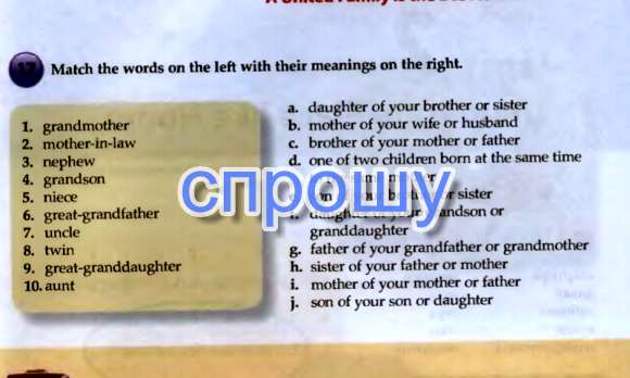 Match the words on the left with their meanings on the right.