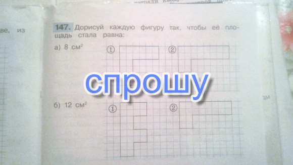 Дорисуй каждую фигуру так,чтобы ее площадь стала равна: