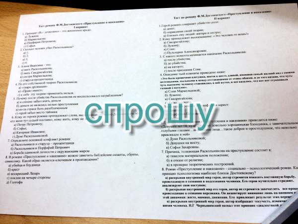 Помогите сделать тест по Ф.М. Достоевскому "Преступление и наказание"
