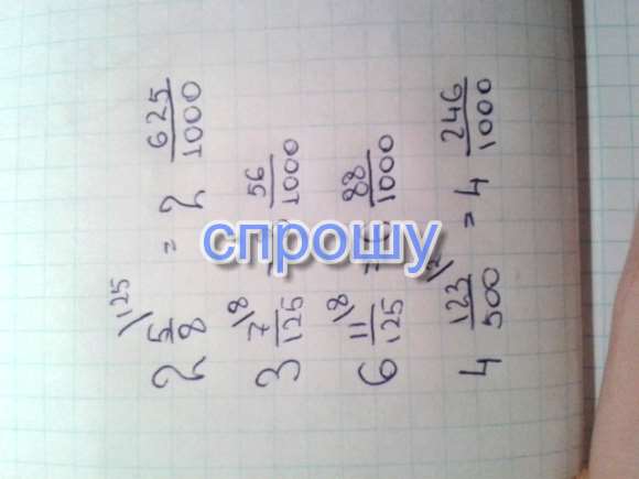 2 целых 5/8, 3 целых 7/125,6 целых 11/125,4 целых 123/500 - к знаменателю 1000