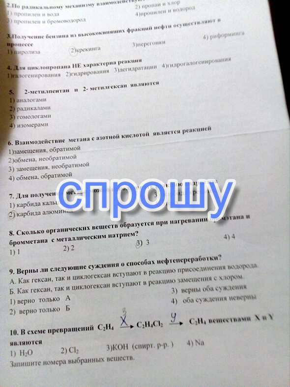 Помогите решить тест по химии 10 класс