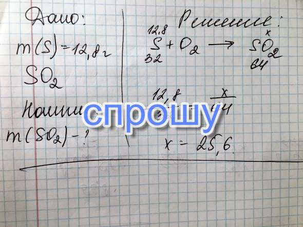 Определить массу оксида серы (4), образовавшегося при взаимодействии серы массой 12,8 г с кислородом.