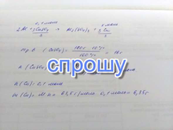 Вычислите массу меди которая выделится при взаимодействии алюминия с 160г 10%ного раствора сульфата меди(II)