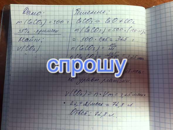 Сколько литров углекислого газа образуется при разложении 500 г карбоната кальция содержащего 35% примисей