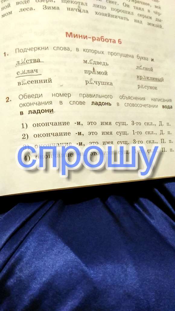 Обведи номер правильного объяснения написания окончания в слове ладонь в словосочетанием вода в ладони