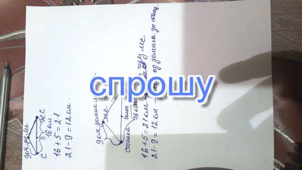 Помогите решить задачу 3 класс, не уравнением , а просто действиями. Путь от стоянки до железнодорожной станции через болото на 5 км короче чем путь через лес.найди длину пути через лес и расстояние от домика лесника до станции.Путь от стоянки до железной дороги 16 км.Путь от стоянки до домика лесника 9 км.