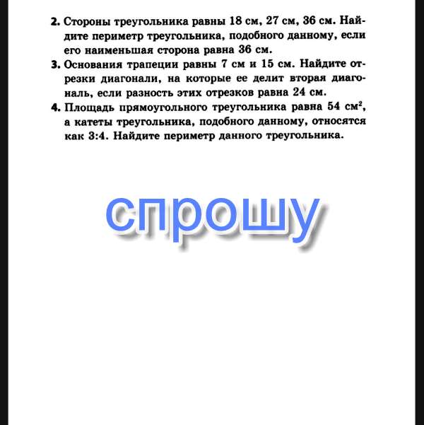 2. наименьшая сторона у первого треугольника 18 а у второго 36 следовательно второй треугольник в 2 раза больше