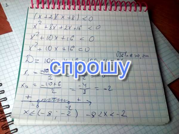 Реши неравенство (Х+2)(Х+8)<0. Ответ запишите в виде числового интервала