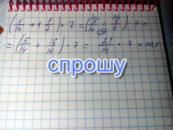 Пример : (пять четырнадцатых +одна целая одна седьмая )× семь = .. Погомите , срочно пожалуйста